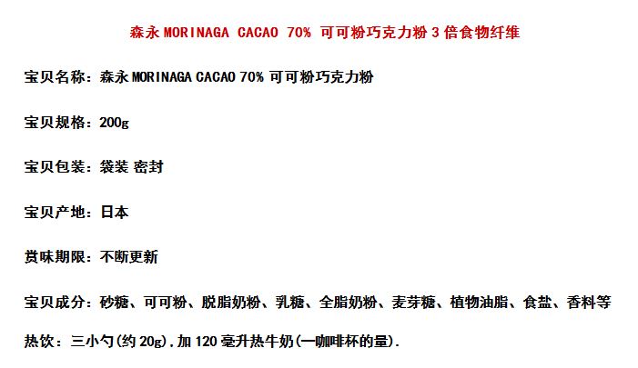 Japan imported Morinaga high cocoa powder 70 0g brewed beverage low-calorie chocolate powder sugar-free low-fat bag
