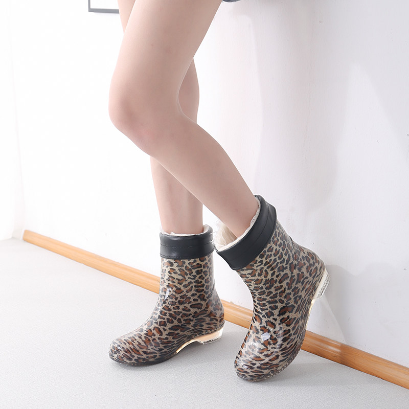 Winter rain boots plus velvet women's fashion adult ladies rain boots mid-tube non-slip plus velvet warm rain boots rain boots