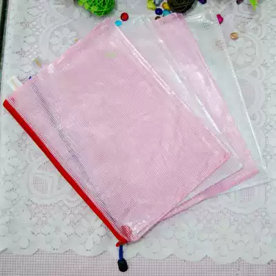 A4 file bag mesh bag mesh zipper bag ticket box bag PVC grid bag color file bag Office