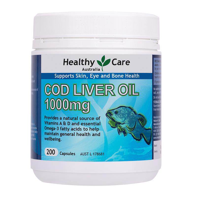 Healthy Care Cod liver oil soft capsule 200 grain 1000mg Vitamin AD Australia Direct mail
