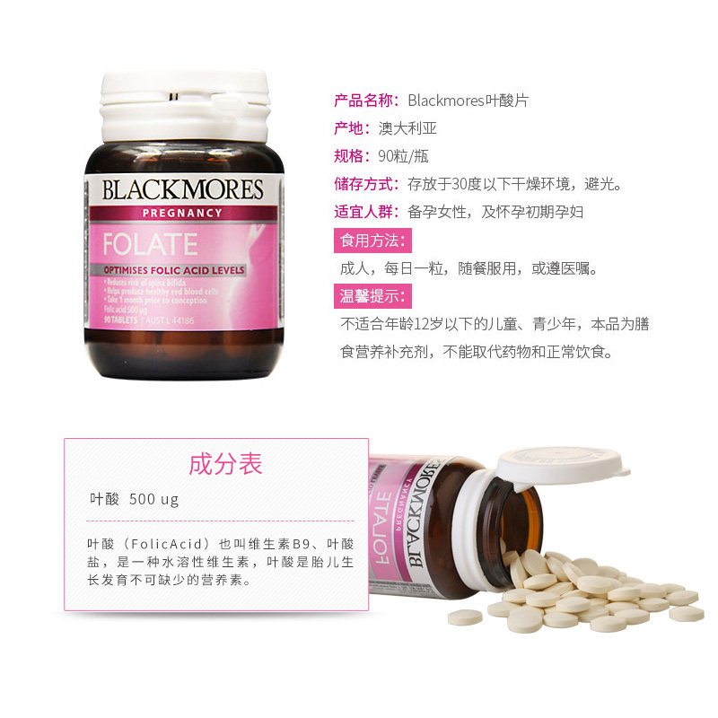 Blackmores Aojiabao Folic Acid Tablets 90 Tablets Pregnancy Pregnancy Maternal and Infant Nutrition Strong Immunity Australia Direct Mail