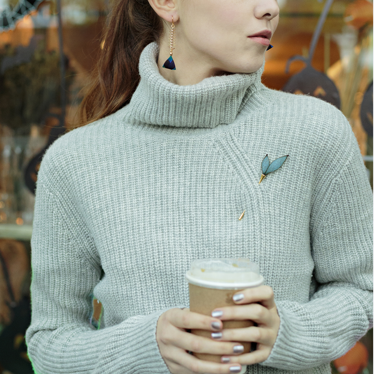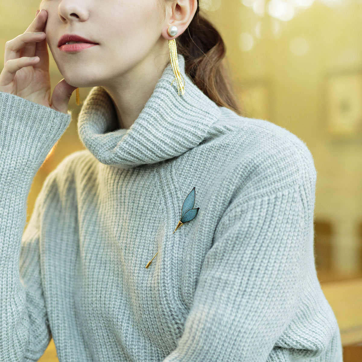 HeyJewel original design color streamlined hollow double drop three-dimensional mermaid tail brooch high-end female accessories