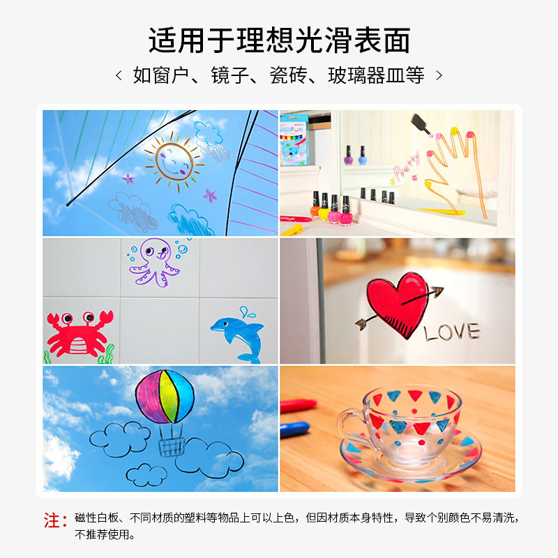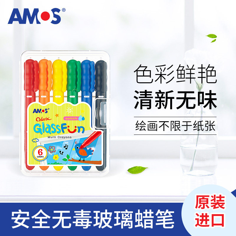AMOS Korea imported children's glass drawing board crayon brush safety crayon tasteless washable graffiti pen color whiteboard pen Erasable 6 colors 12 colors set Glass crayon Children's Day