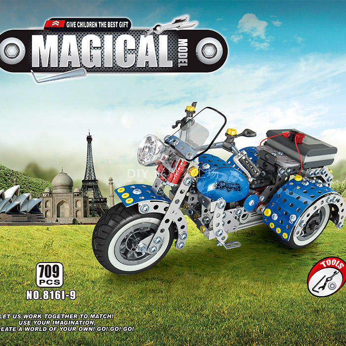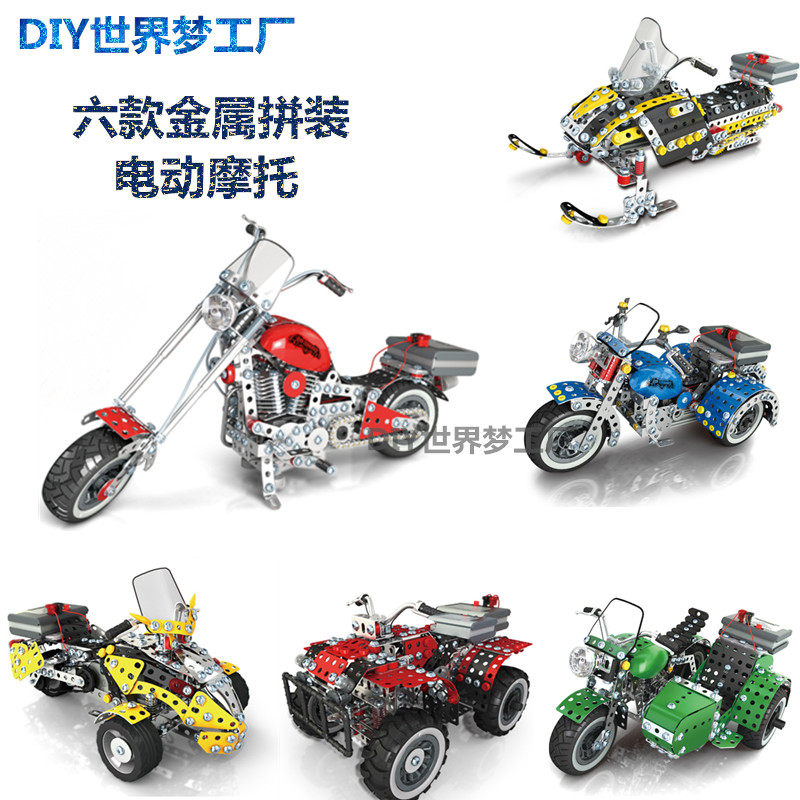 Shunji concept dynamic metal assembly model electric disassembly motorcycle parent-child interactive building block assembly 8-10