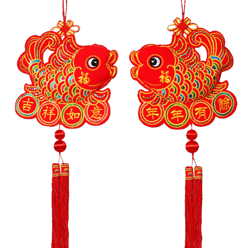Colorful fish embroidery cloth art string Hon Pearl Yuan Bao Hongyun pearl Money bag Hongyun pearl Pearl Apple Rich Pearl Apple Rich Rong Hua-Fucalligraphy hanging decoration Fugui Rong Hua-Money bag hanging decoration Fuexpensive Rong Hua-Apple hanging decoration lantern