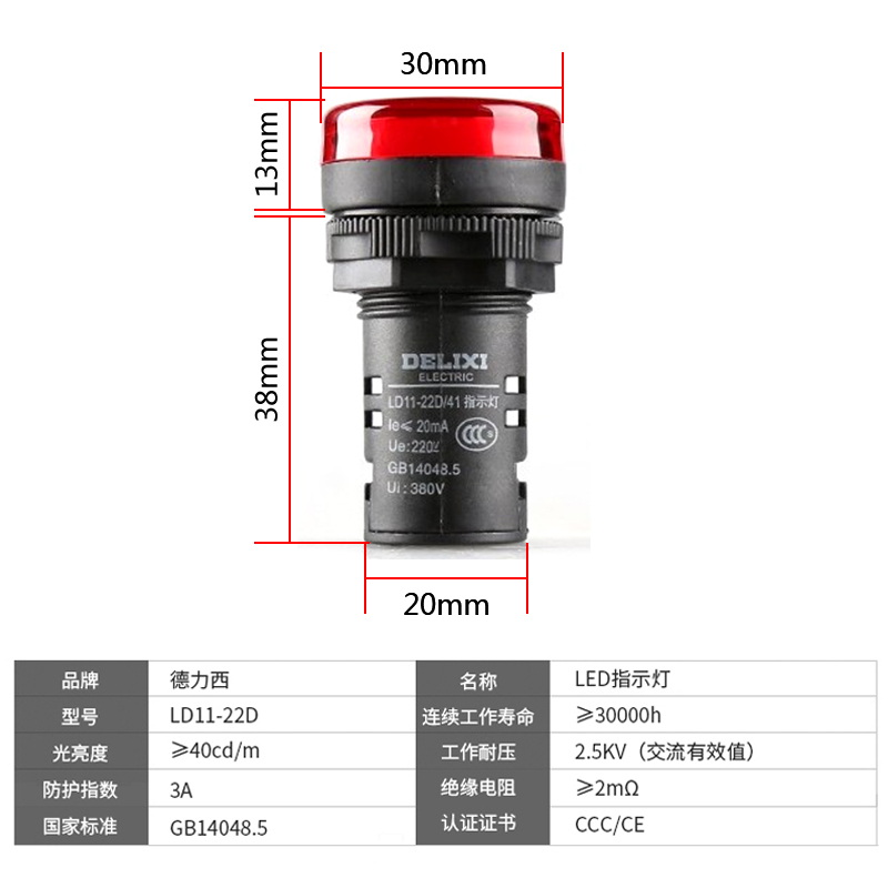 Dresy button light work LD11-22D secure outlet led signal light 220V power switch