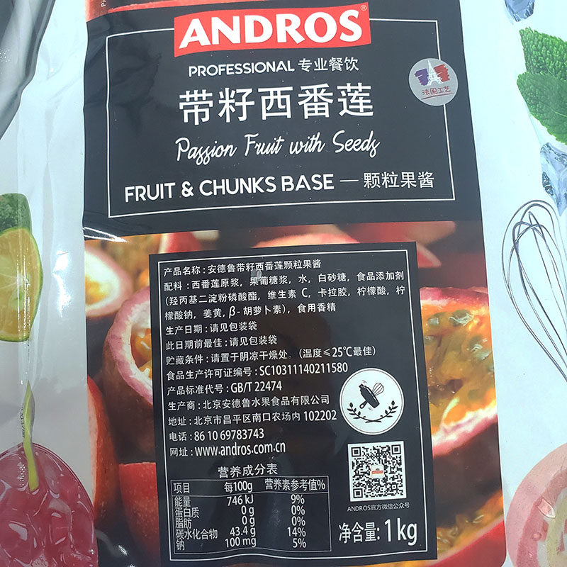 Andrew passion fruit sauce 1kg with seed passion fruit granule jam milk tea raw material passion fruit tea sauce