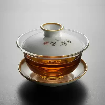 Heat-resistant glass ceramic cover Bowl hand-painted ceramic three-talent bowl kung fu tea set thickened tea cup tea brewers