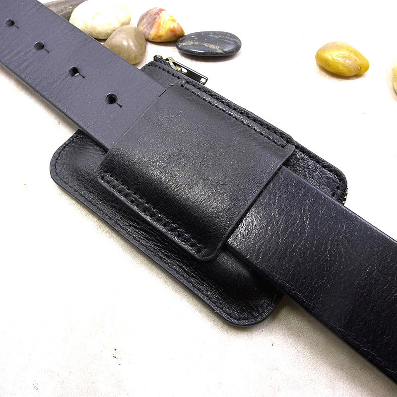 Wearing a belt, card holder, driver's license belt bag zipper invisible ultra-thin hanging belt horizontal section genuine leather cowhide male LHD