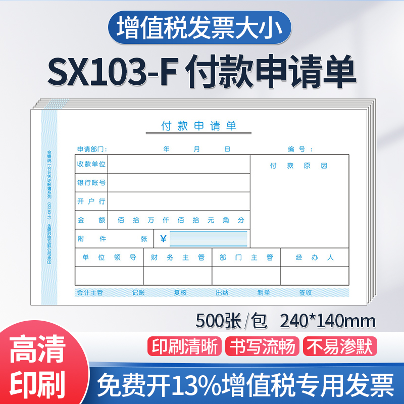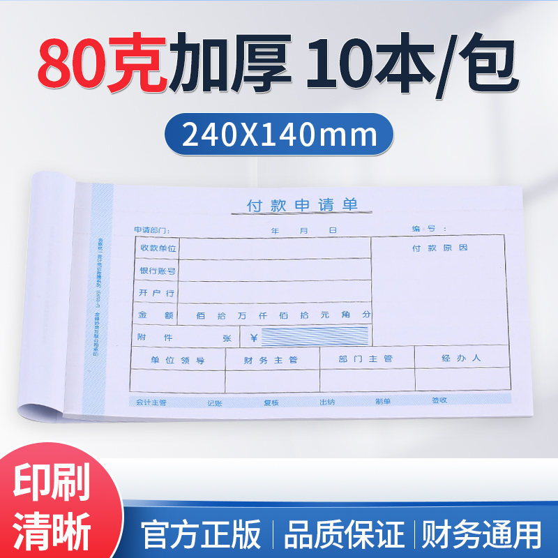 Golden Butterfly Financial Matching Payment Application Approval Single Book SX103-F Payment Documents VAT Invoice Edition 240 * 140mm Reimbursement fee Single Original Voucher Adhesive single payment voucher 10 Ben