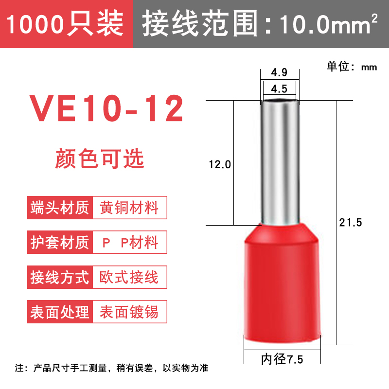Small black clip VE10-12 European style cold press terminal 1000 only tubular terminals E10-12 needle shaped copper nose copper wire ear
