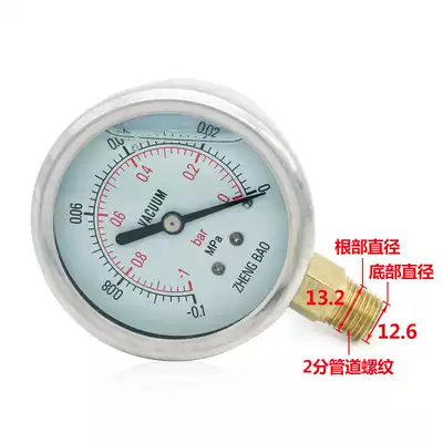 Stainless steel seismic pressure gauge pipeline seismic and shockproof pressure display gauge YN60 16kg thread 1 4psi