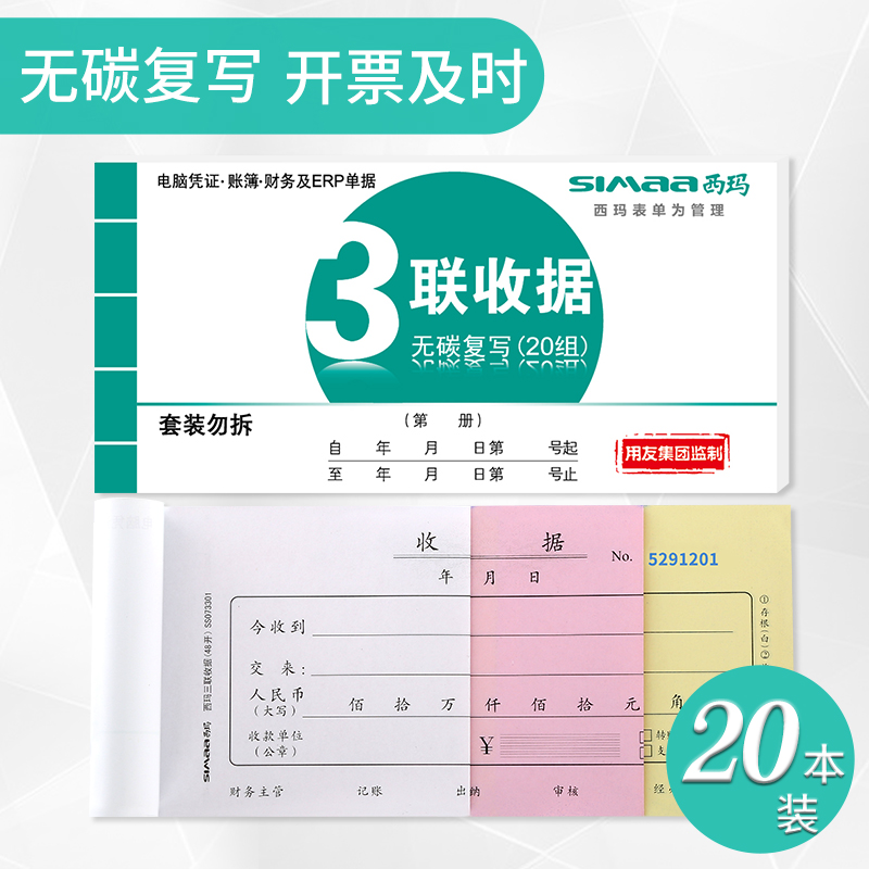 Sima receipt triple receipt (48 open) SS073301 UFIDA handwritten receipt financial accounting triple reimbursement document document triple with bill carbon-free copying office supplies