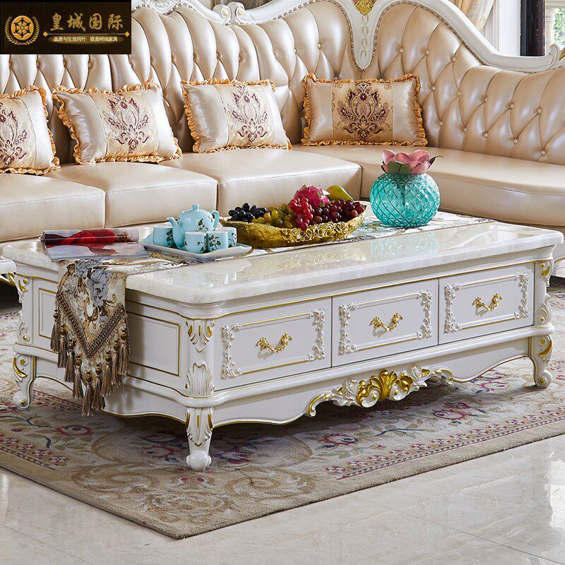 European-style marble coffee table simple modern TV cabinet living room coffee table TV cabinet combination solid wood small apartment set
