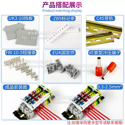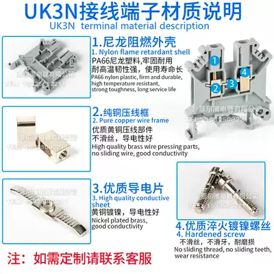 Philpu pure copper rail type UK3N voltage terminal block uk-2 5N 2 5MM square non-slip wire