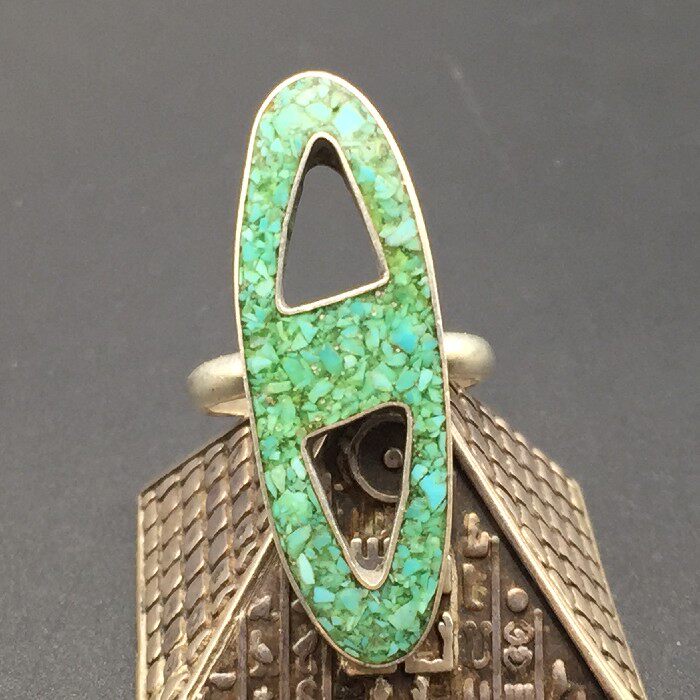 Western Vintage Silver Accessories 1980s US Indian Indian Zuni Zuni green pine stone 925 pure silver ring female section-Taobao