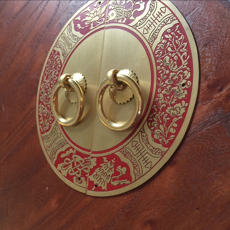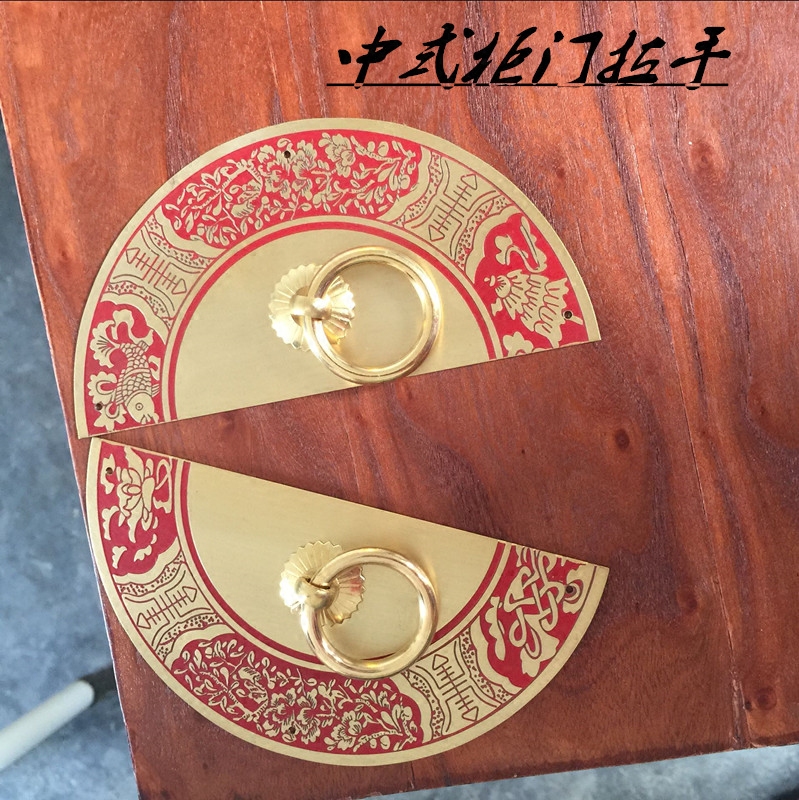 Chinese antique copper door lock door holding hands with two holes decorated against open door and hand retro handle