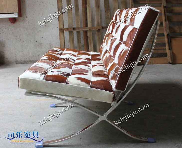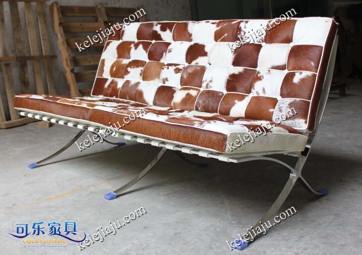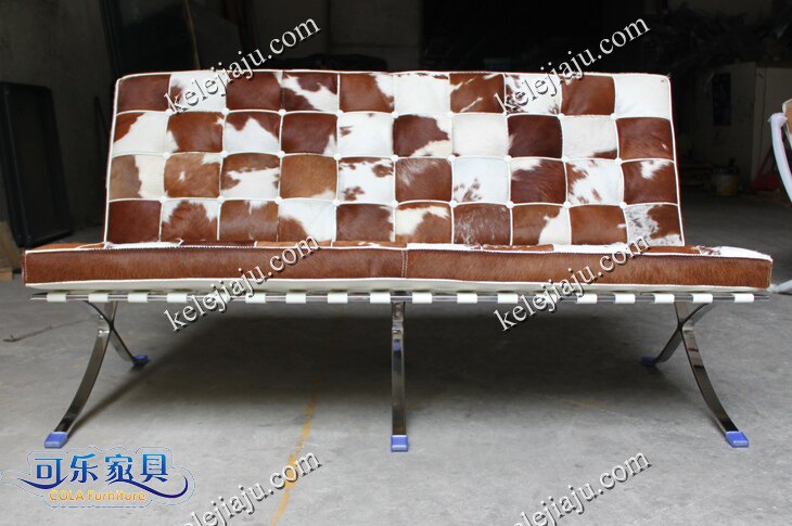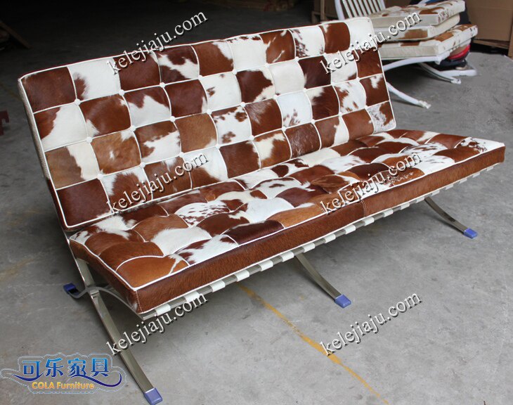 CL3001 Double-brown and white cowhide barcelona chair two-seat sofa