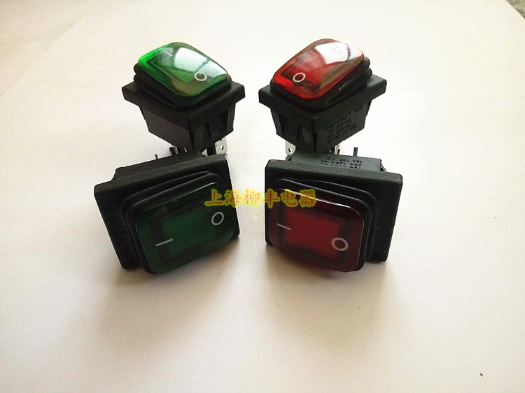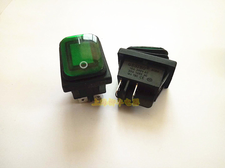 Silver contact point waterproof power switch RL2 KCD4-2X1N 4 foot 2 gear green light boat type 4-foot rocker switch