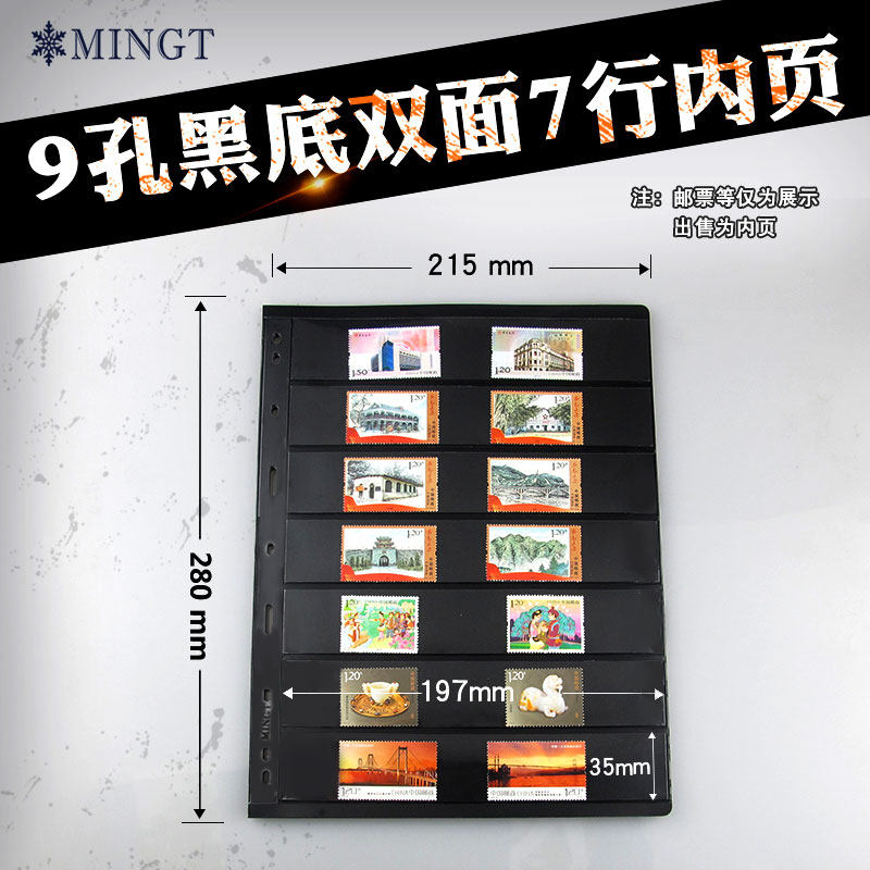 PCCB 9 hole homemade page Black bottom double side seven lines stamp booklet collection pamphlet inventory page