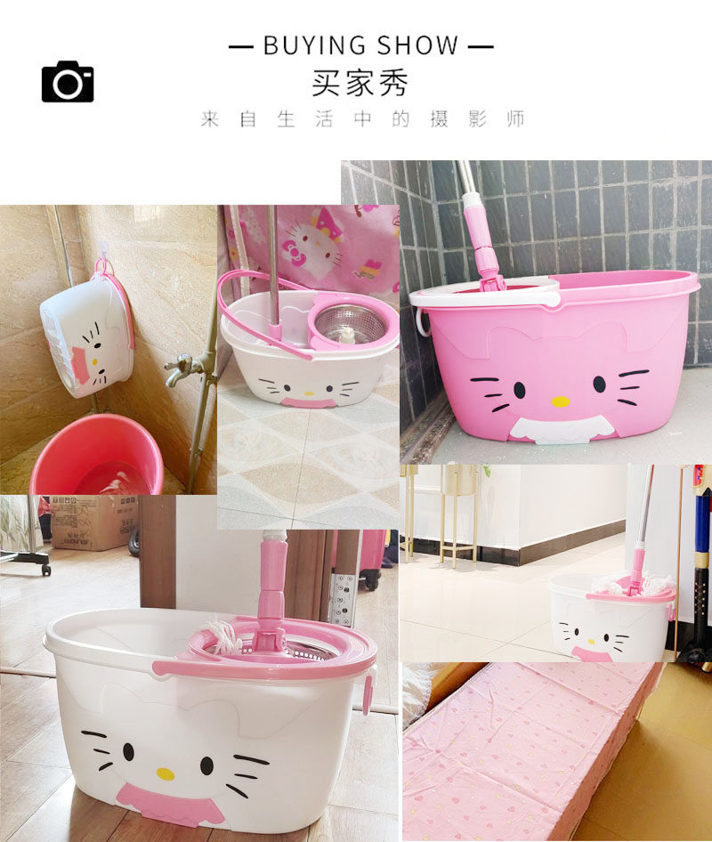 Cartoon female mop-free double-drive good god mop hand press mop bucket automatic mop head mop household mop head