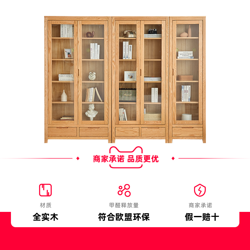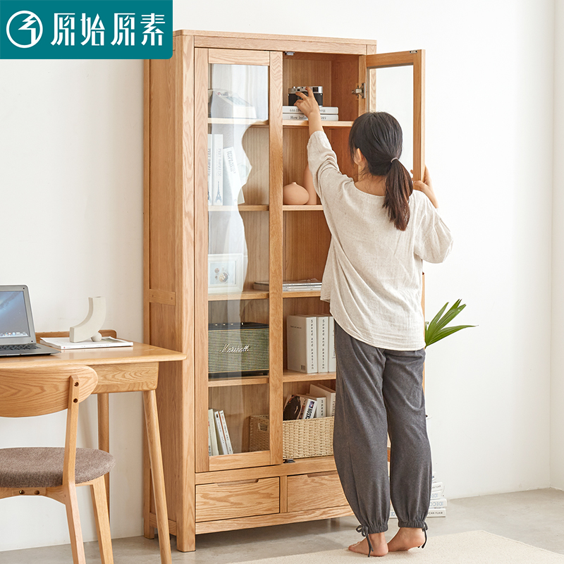 Original original full solid wood bookcase bookcase Nordic Oak bookcase Simple study storage cabinet display cabinet A3171