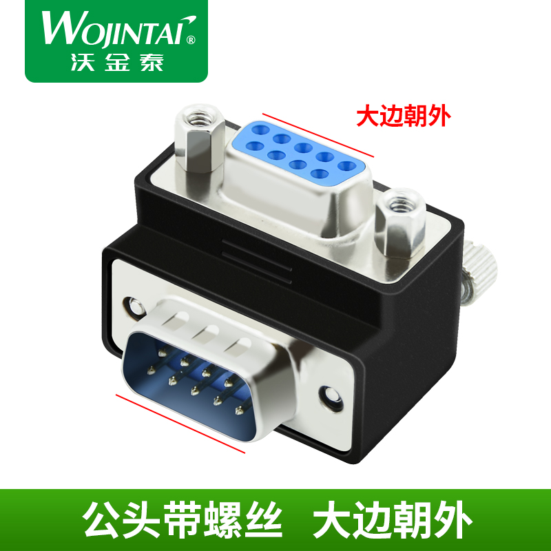 Wojintai RS232 DB9 pin serial port adapter Right angle 90 degree elbow male to female conversion head with screws