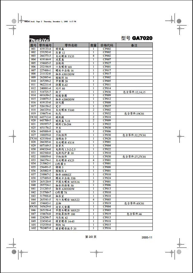 MAKITA PASTA GA7020 angular mill original fitting rotor stator gear head shell spindle carbon brush, etc.