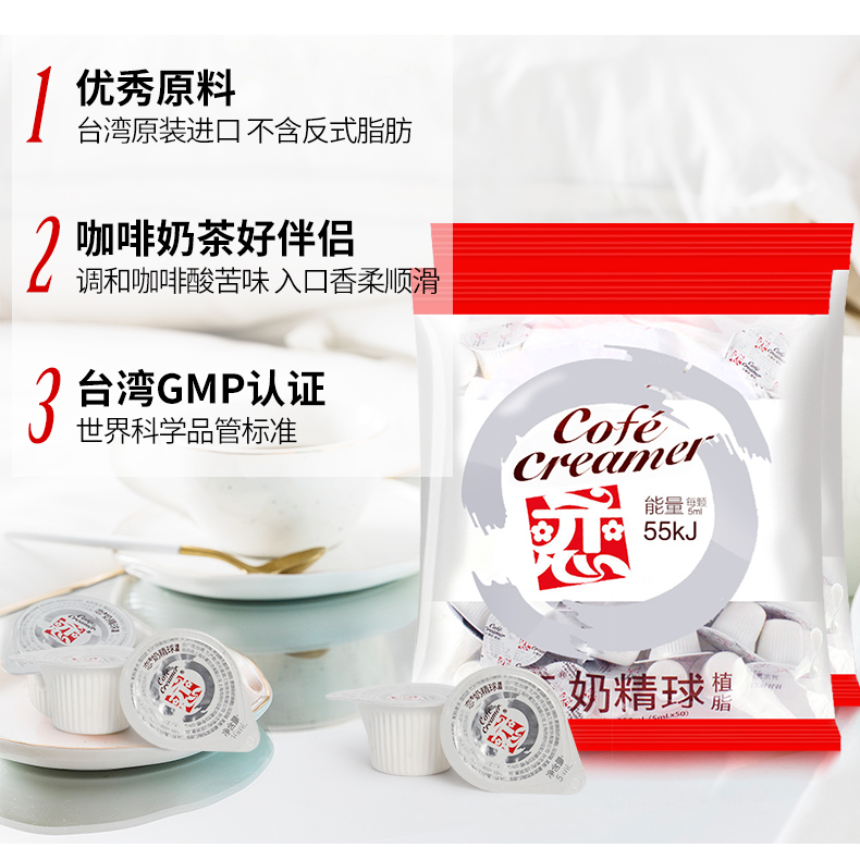 Taiwan Love Brand Milk Ball Coffee Companion Small Cream Ball Coffee Milk Bag Sugar Pack Fresh Milk Love Creamer Ball 5ml*50 Capsules