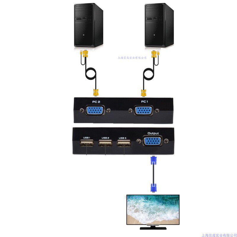 HD VGA switcher 2 in 1 out with line computer monitoring shared display switcher support WIN10