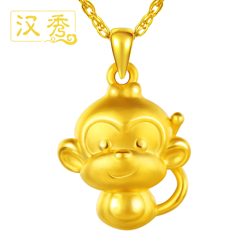 Hanxiu golden monkey pendant gold Zodiac monkey 999 full gold necklace female 3D hard gold small golden monkey zodiac pendant male