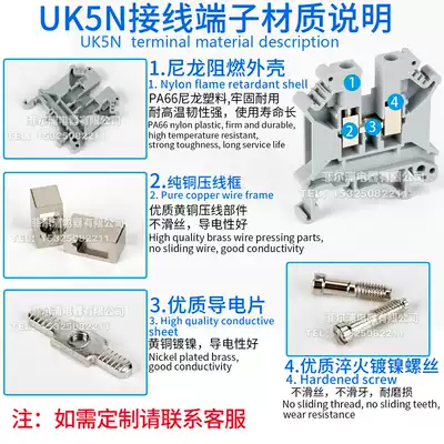 Factory direct rail type combination terminal block UK5N 4MM terminal block UK-5N thick copper parts non-slip wire
