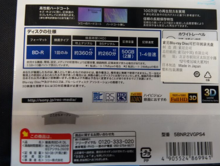 Sony BD-R50G Blu-ray printable DVD burning disc RDL50G 5 color film packaging single-piece boxed