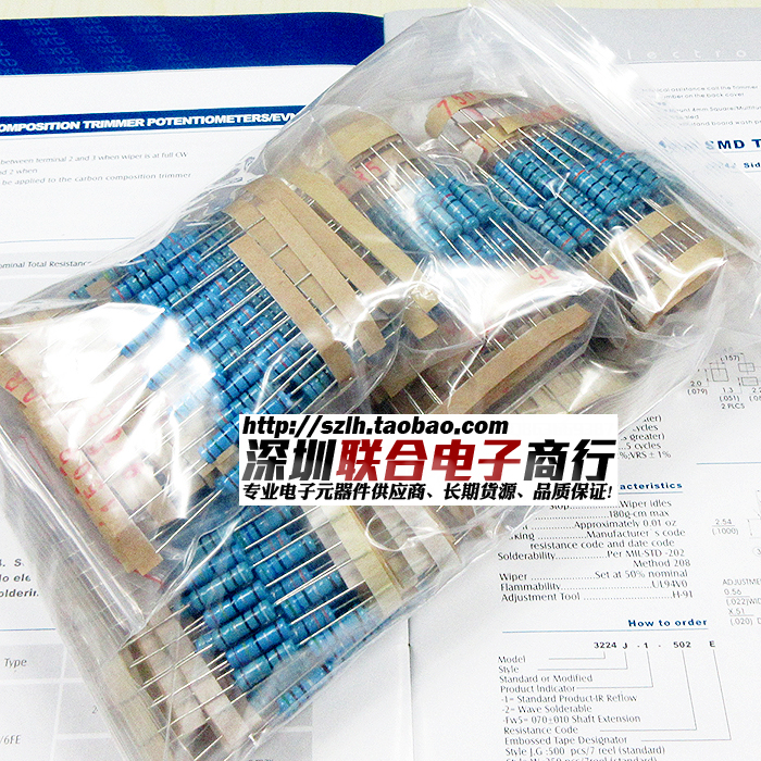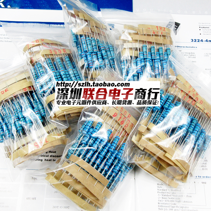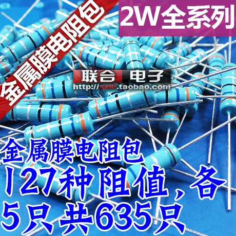 2W metal film resistor package Full range of 127 kinds of 2W metal film resistor 10R to 91R2W Metal film resistor 100R to 910R2W Metal film resistor 1K to 9K12W