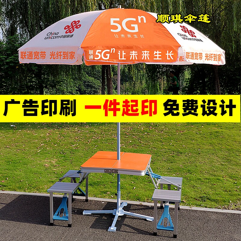 China Unicom 5G Advertising umbrella activities Promotion shading umbrella folding table and chairs with umbrella pendulum exhibition industry promotion sunshade