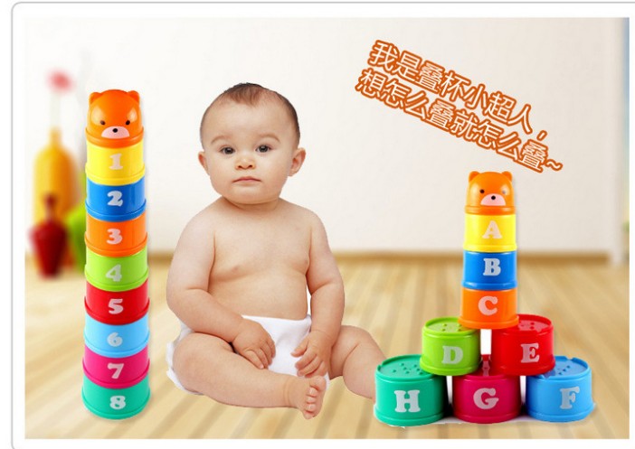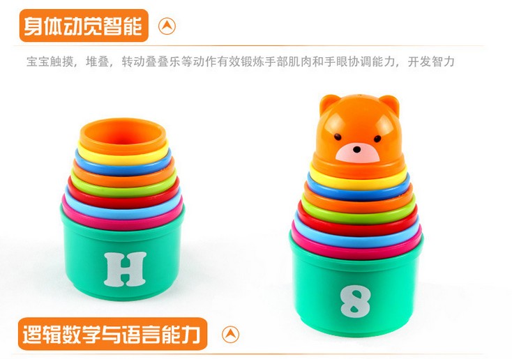 Early education toys Fun stacking music set cup Kindergarten teaching aids Plastic color stacking cup 3C certification