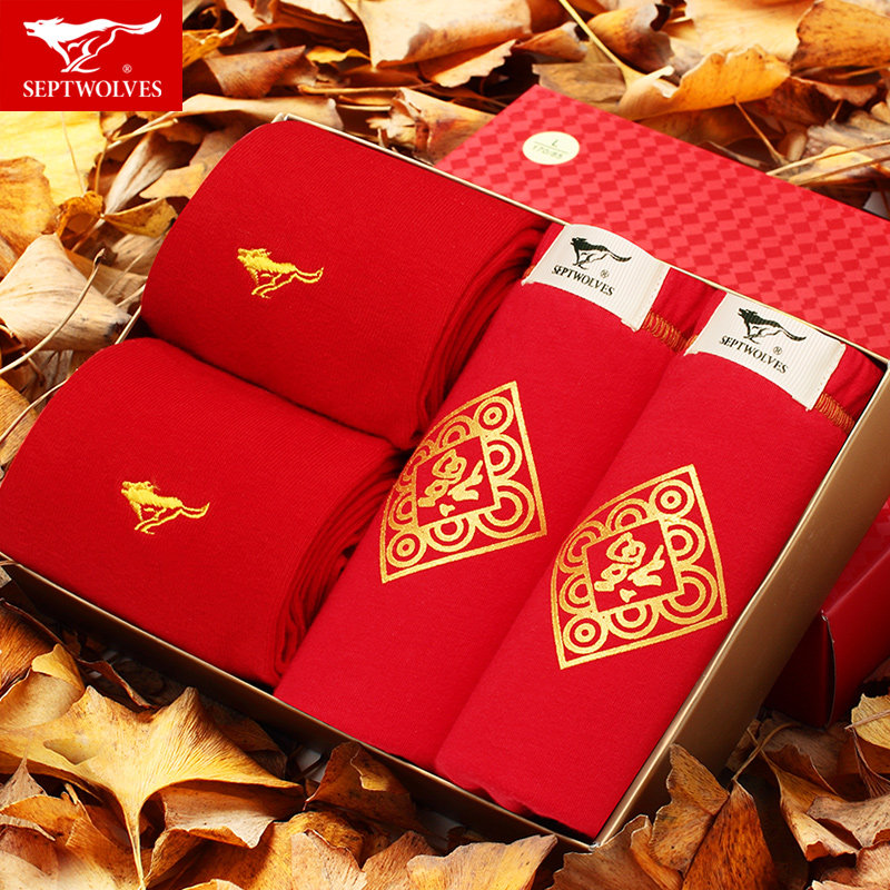 The seven wolves men's red panties Natal bovine red cotton men's boxers married men's boxers cow years shorts