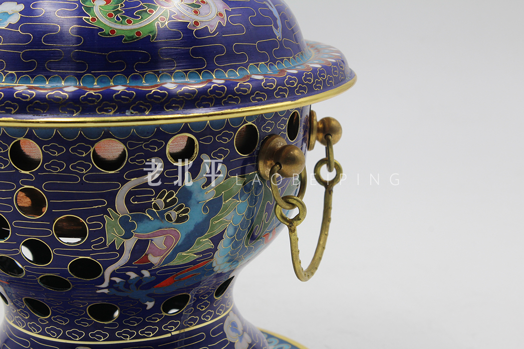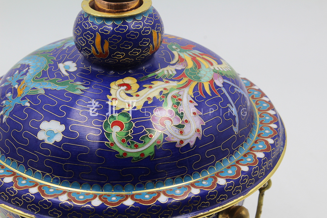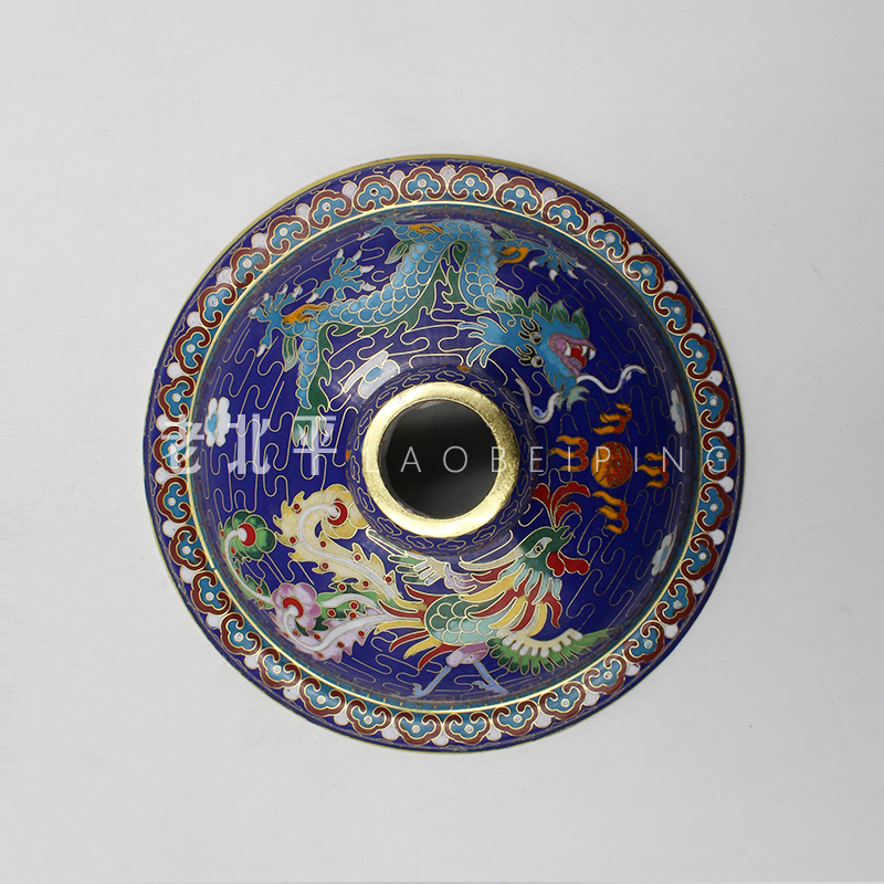 Copper tire filigree enamel Blue Dragon and Phoenix gourd pot