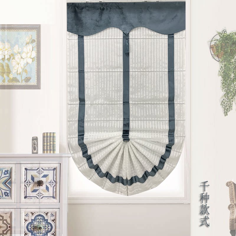 Dreams round Roman curtain light-transmitting shading gray-blue Mediterranean living room dining room partition simple small fresh lifting curtain