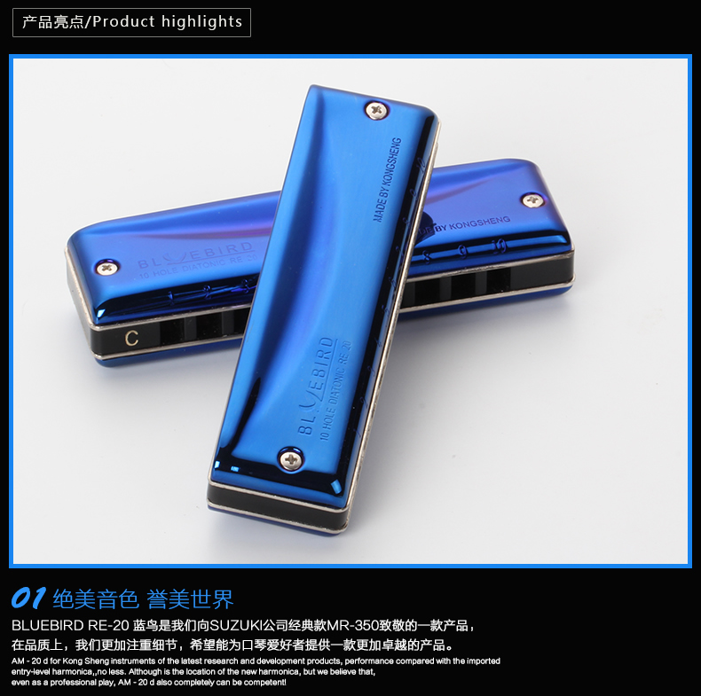 Hole acoustic harmonica 10 holes Blues BLUEEBIRD RE-20 ten Kong harmonica