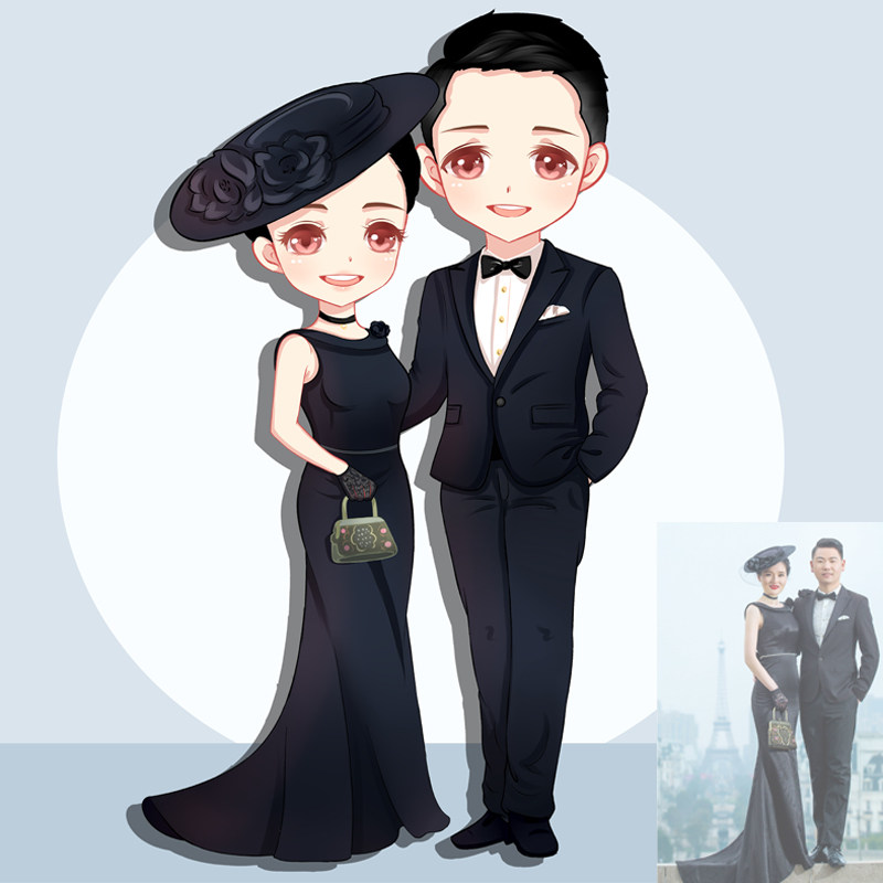 Exquisite cute q cute cute cute couple cute q version girl head portrait live photo to cartoon cartoon illustration design customization