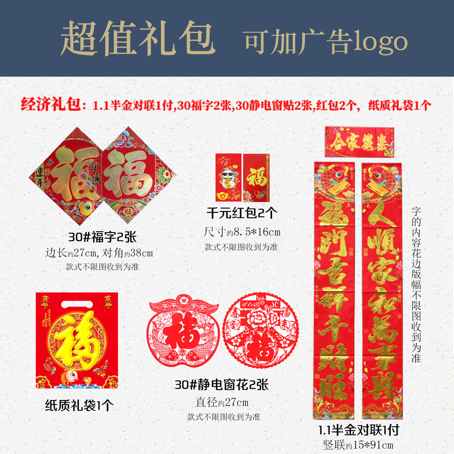 2021 Year of the Ox Spring couplets gift package Blessing word door sticker red envelope New Year Decoration Bronzing household New Year couplets custom