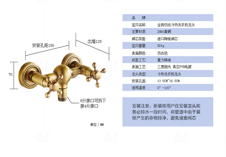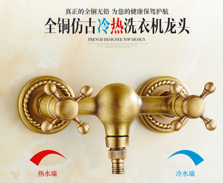Antique washing machine faucet hot and cold copper 4 points 6 points into the wall faucet powder room washing machine hot and cold water
