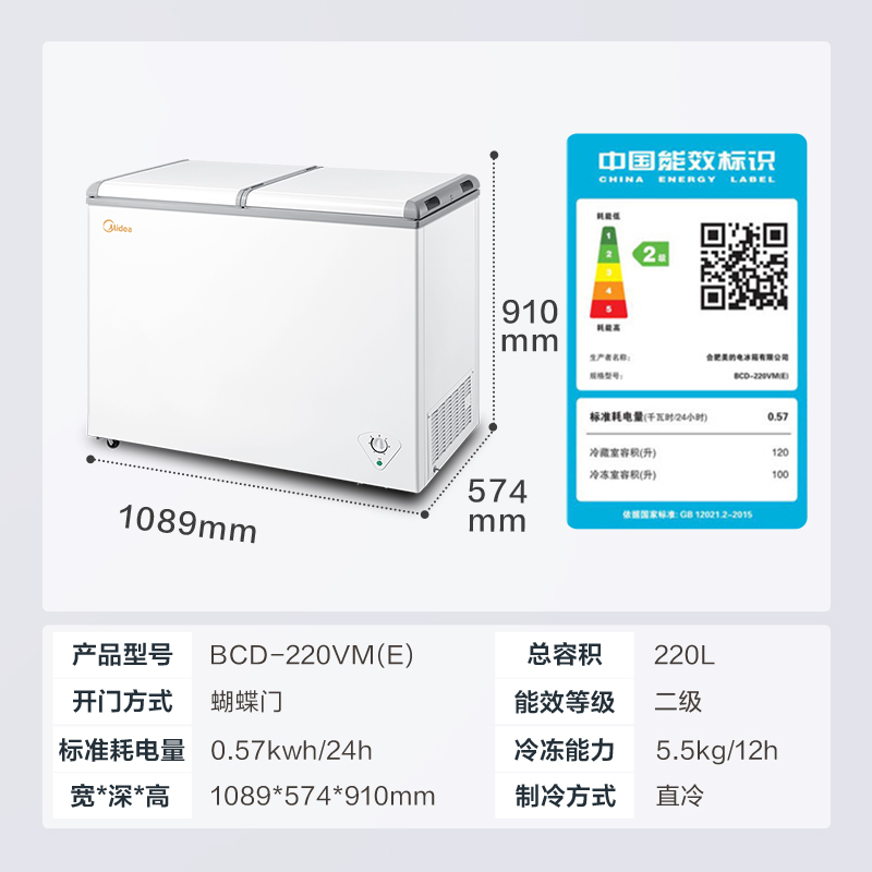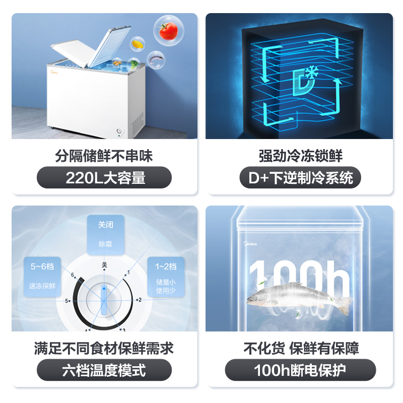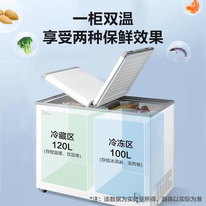 Midea 220-liter freezer commercial household refrigeration fresh-keeping freezer dual-purpose double temperature large capacity freezer small refrigerator