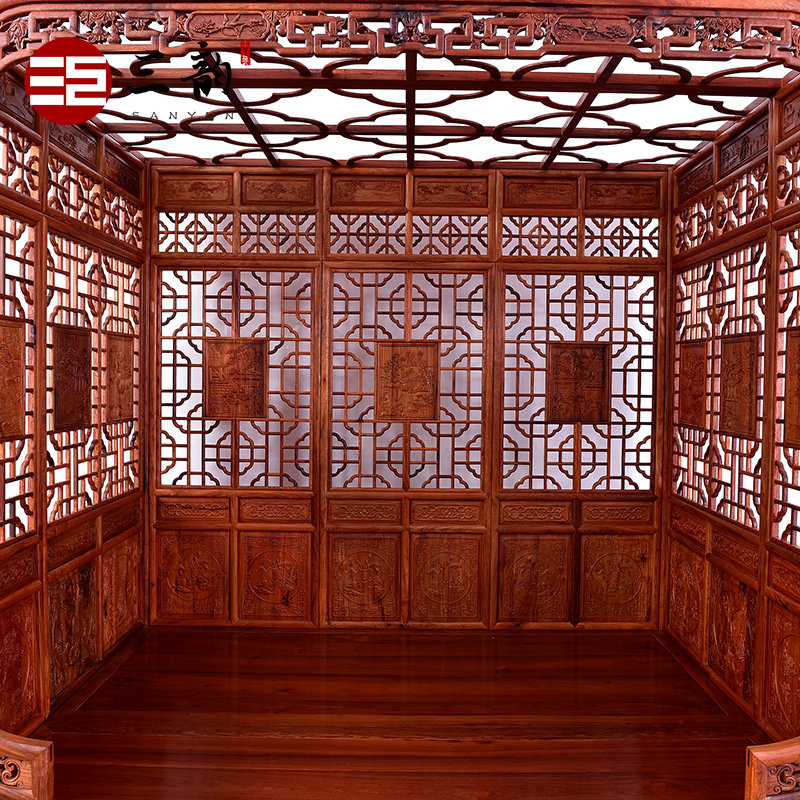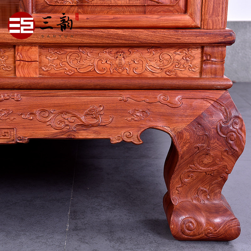 Myanmar rosewood shelf bed Large fruit rosewood shelf bed Chinese antique Ming and Qing Classical solid wood bed Double bed Z