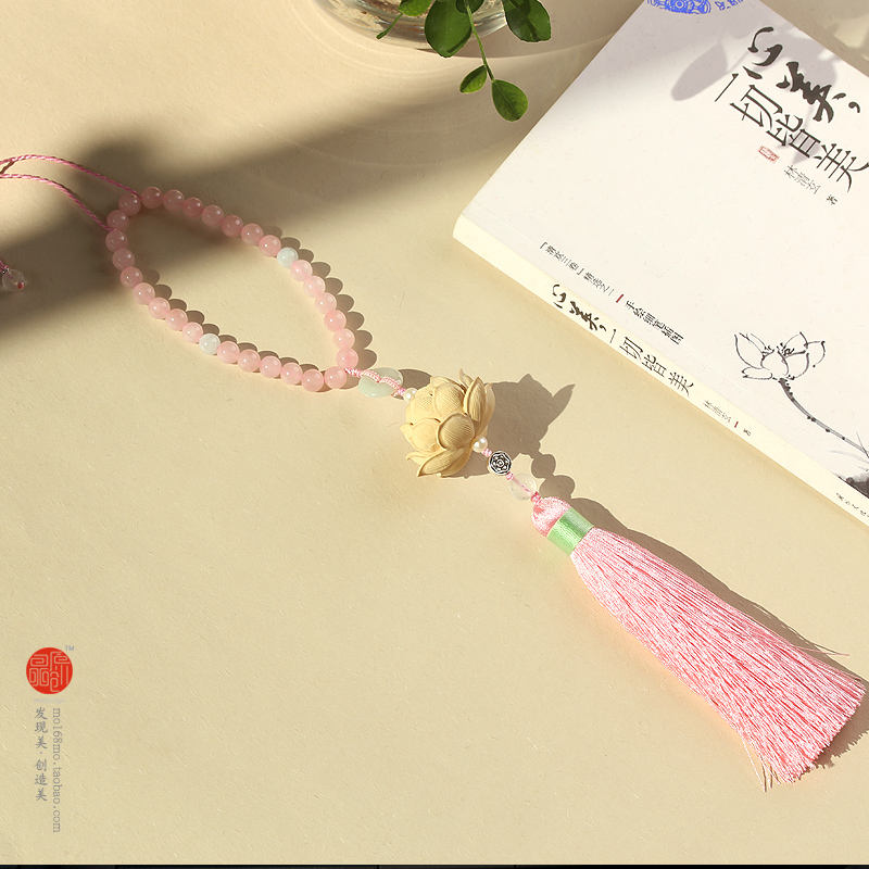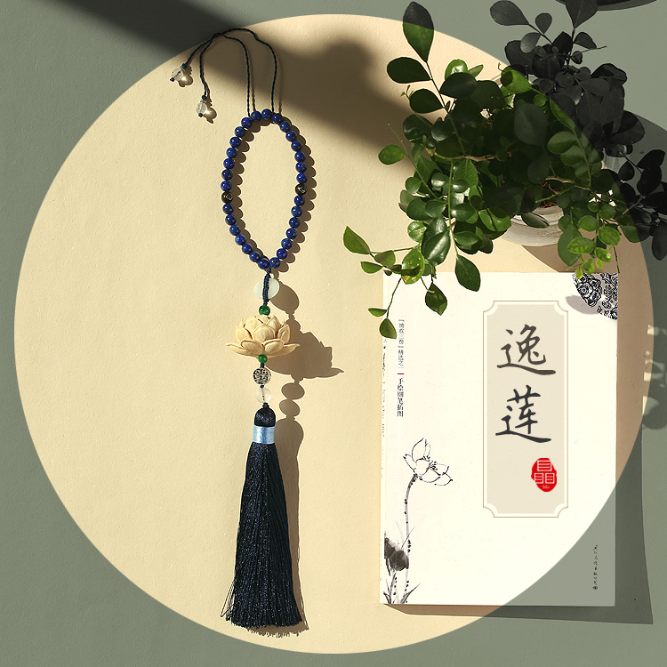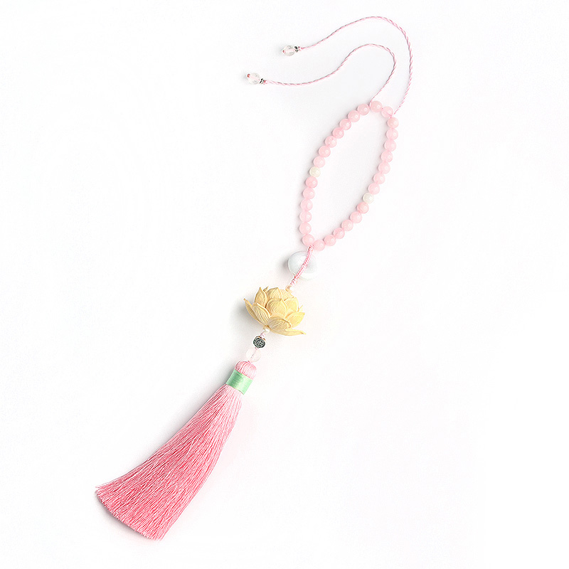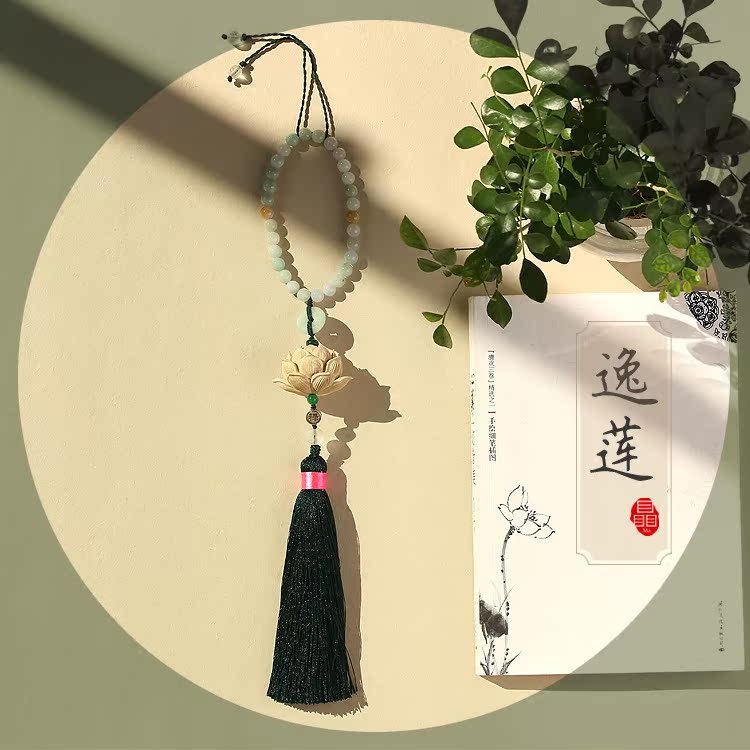 Zhuang original boxwood hand-carved lotus tassel car pendant female couple model birthday craft gift
