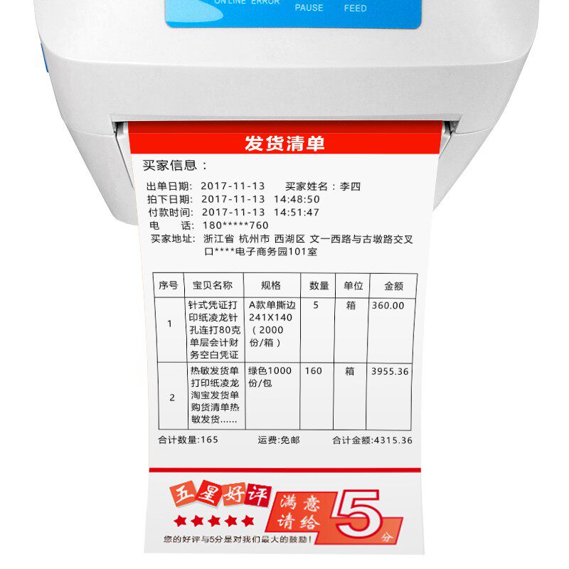 Thermal paper shipment single printing paper barcode printer printing electronic face printing electronic sheet sales single electric goods delivery order