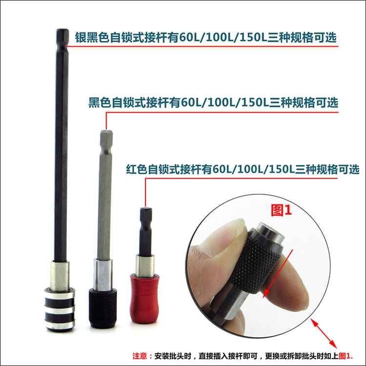 Electric screwdriver batch head conversion rod screwdriver pneumatic screwdriver extension rod hexagonal self-locking extension rod with strong magnet