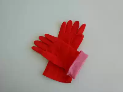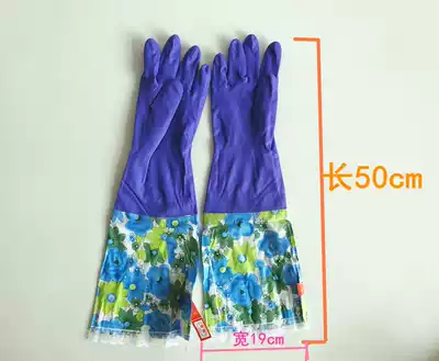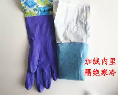 Plus velvet kitchen durable latex gloves Housework cleaning dishwashing laundry Waterproof warm rubber lace gloves