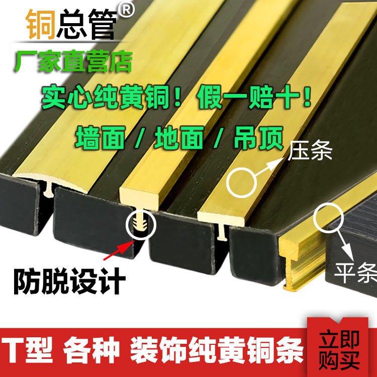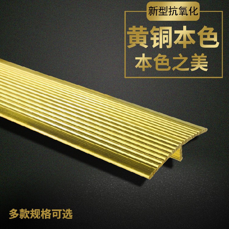 Thickened Brass T-Shaped Wood Floor T Type Copper Strip Doorway Reseting Press Edge Strip Stairs Non-slip Copper Press Strip